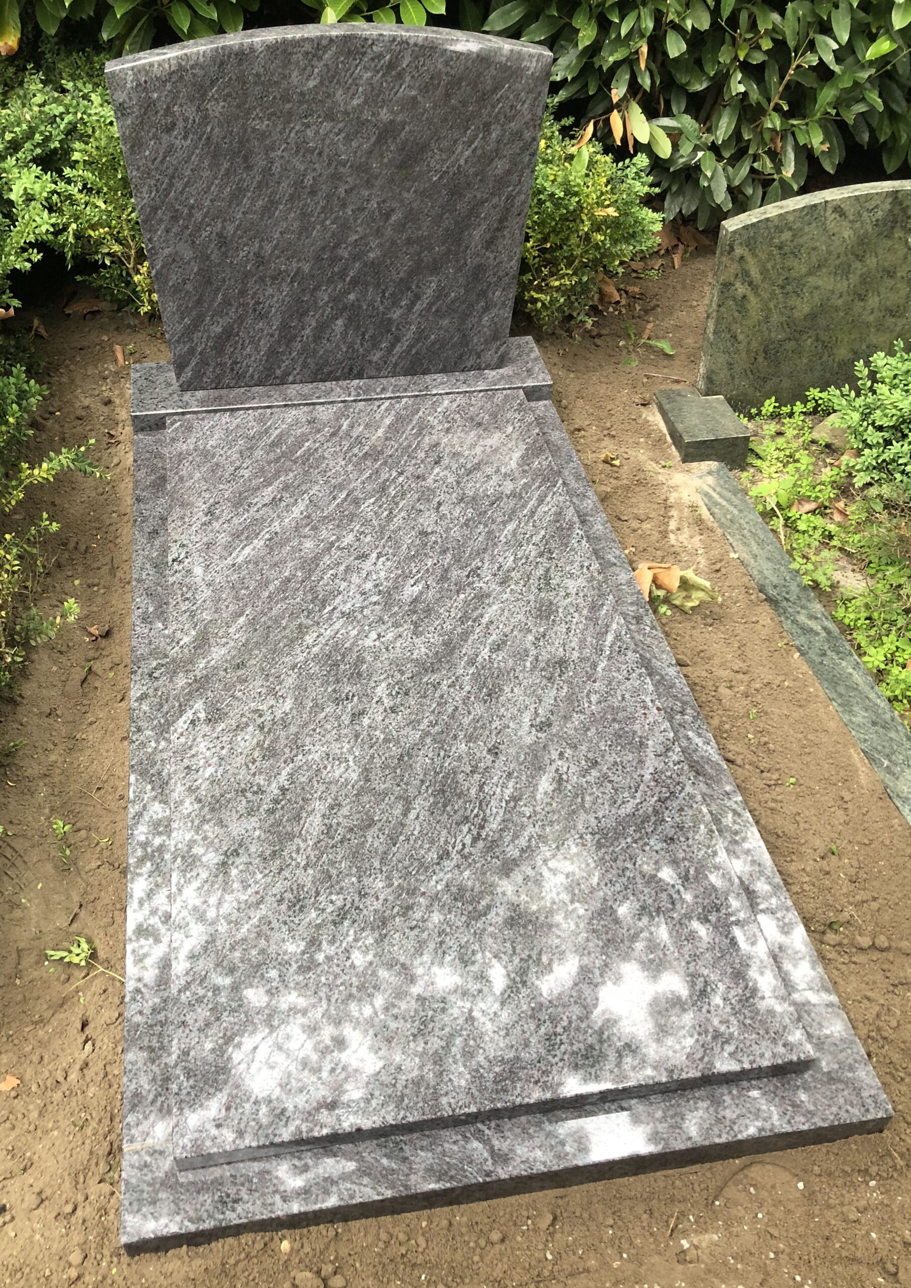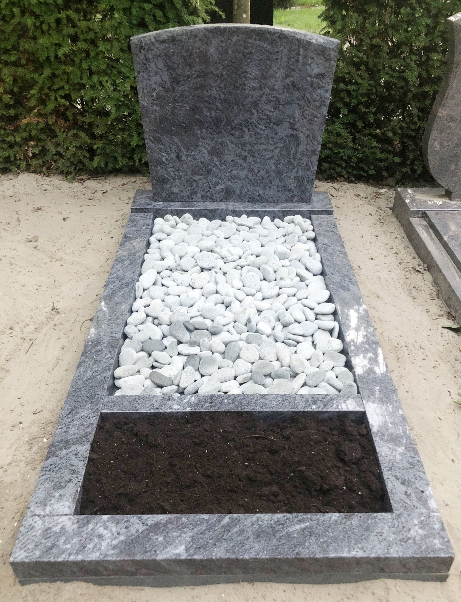 De staande steen is aan de voorzijde facetgeslepen. Het graf wordt afgewerkt met een grindvak, gevuld met grind naar keuze, en een plantvak voorzien van tuinaarde.